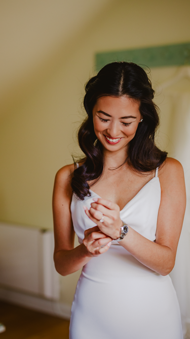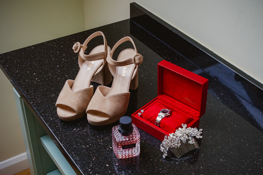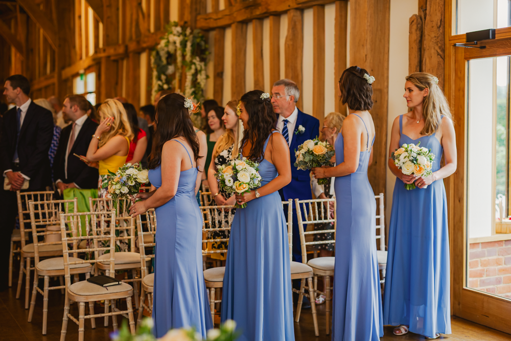When I went to take photos of them getting ready in the morning, I couldn't believe how well Harriet's bridesmaids' dresses matched the shade of the flowers (which I want to call cornflower blue, but I guess I should call hydrangea blue!) I also took a few shots of Matt and his groomsmen getting ready, and they definitely had an eye for detail too: under the collar of Matt's blazer, he'd had their initials and the date embroidered. (They also had a charcuterie board and whiskey, so it was a very classy start to the day!)
