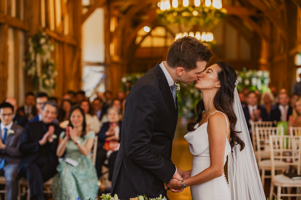 There's also, of course, the buildings themselves. Up until 2014, weddings and parties took place in the Grade II-listed Georgian Manor House, which was designed by the same architect who did a couple of buildings you might also have heard of: the Bank of England and 10 Downing Street. After a loving, meticulous restoration, the 16th Century Great Barn became the space for events at this Hertfordshire wedding venue, and that's where Harriet and Matt celebrated their magical day.