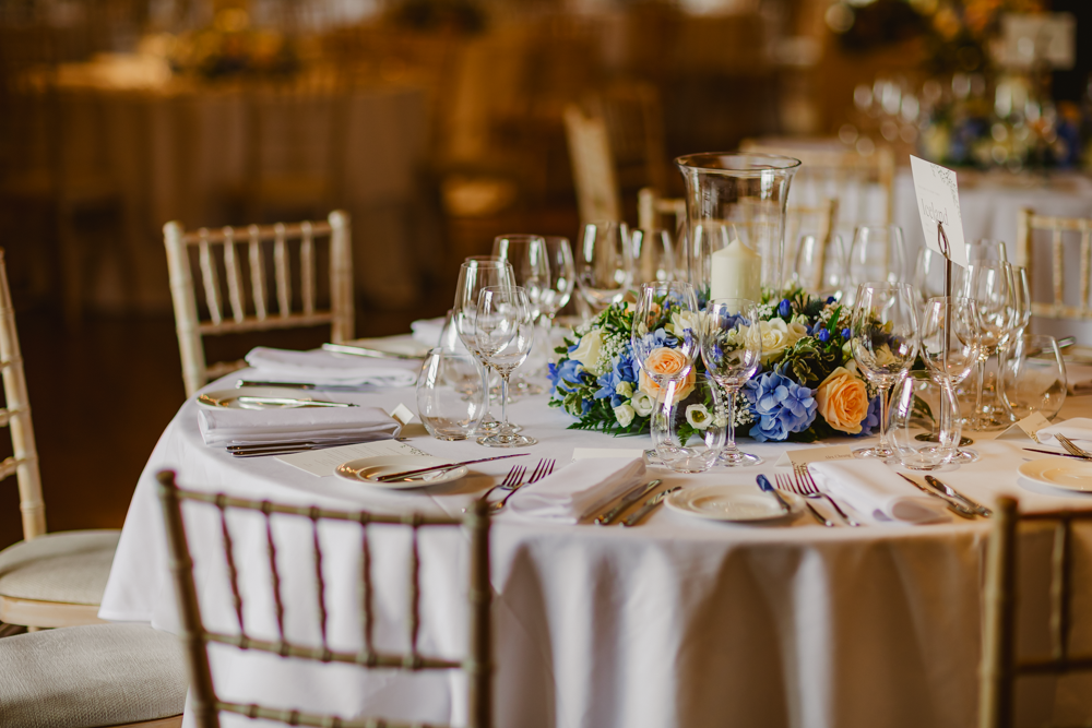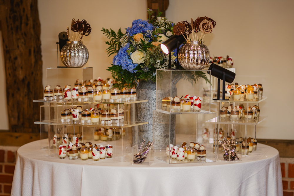 During the drinks reception the Micklefield Hall team had turned the barn around so that it now housed round tables decorated with more beautiful peach and blue floral arrangements. Upon them all sitting down, Harriet welcomed everyone, before her Dad and Matt did their speech. After the main course, their Best Man and Maid of Honour also did a speech – then, it was time for the dessert bar to open!