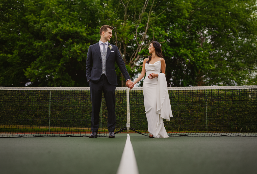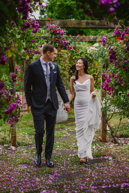 Guests then made their way into the marquee for drinks, whilst we took some group shots against the rolling hills. Armed with an umbrella for the incoming drizzle, I then took the newlyweds for a stroll in the gardens for some quick couples' portraits.