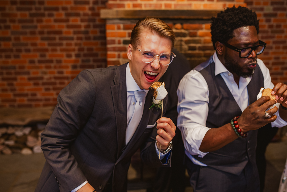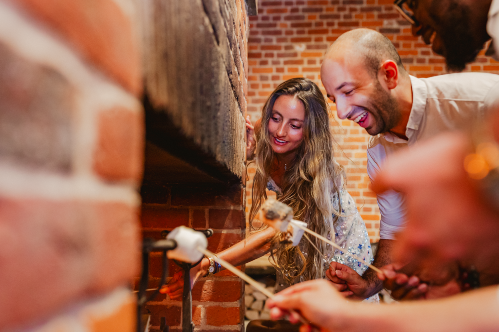 Yep, you read that right: Harriet and Matt had a dessert bar. Genius, right? Instead of a cake, they had a table full of goodies to make S'mores, which guests could then toast in the open fire.